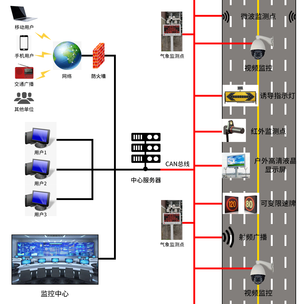 在交通網(wǎng)絡(luò)越來越發(fā)達(dá)的今天,各類以公路、鐵路交通運輸為主的安全問題也越來越成為人們關(guān)注的焦點,尤其是以極端惡劣天氣情況下,所可能引發(fā)的惡性公路交通事故成為當(dāng)今公路交通安全的首要關(guān)注焦點。氣象環(huán)境因素對現(xiàn)代交通的影響主要表現(xiàn)其可能對路面的物理性質(zhì)、司機觀察視線以及車輛自身安全的改變等方面。例如:大雨、積水、山洪、積雪、濃霧、結(jié)冰、大風(fēng)、霜凍、高溫、塌方以及泥石流等突發(fā)氣象環(huán)境因素對道路的運營都會產(chǎn)生直接的破壞和影響。因此,象環(huán)境參數(shù)和道路通行狀態(tài)的數(shù)據(jù)信息采集是十分必要且非常重要的。在公路、鐵路沿線上建設(shè)實時氣象監(jiān)測網(wǎng)絡(luò)是實現(xiàn)現(xiàn)代交通定時、定點、定量的氣象監(jiān)測和預(yù)報服務(wù)的基礎(chǔ),交通氣象全要素全路程實時化監(jiān)測及防災(zāi)預(yù)警系統(tǒng)將是未來智慧交通系統(tǒng)必不可少的組成部分。