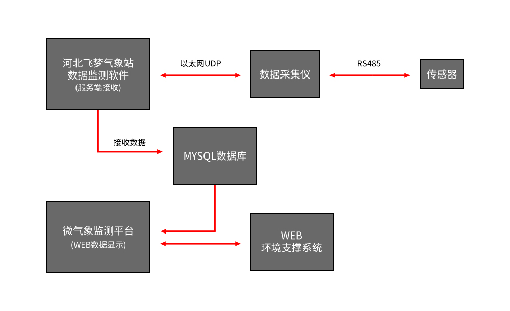 飛夢交通氣象智能預(yù)警系統(tǒng)方案由傳感器系統(tǒng)、采集系統(tǒng)、供電系統(tǒng)、通訊系統(tǒng)、外圍設(shè)備等硬件配合相應(yīng)的采集軟件、數(shù)據(jù)處理分析軟件、中心站組網(wǎng)軟件構(gòu)成。對公路、鐵路沿線的風(fēng)向風(fēng)速、氣溫、濕度、雨量、能見度、路面狀況(路面和路基溫度、路面干濕程度、積水厚度、雪深等))等進行自動監(jiān)測,并將監(jiān)測信息及時傳送到監(jiān)控中心。